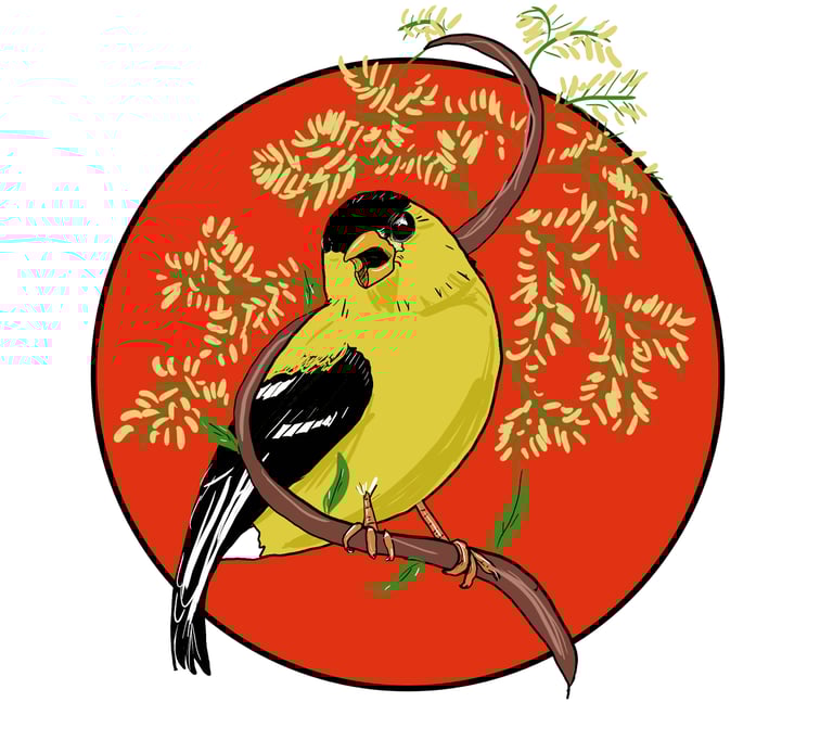 A defiant goldfinch for when you're feeling defiant and also like a goldfinch. Particularly relevant in Iowa. Stickers printer TBD.