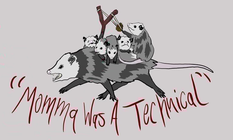 Hat-sized version of the LOW-TECH Momma Was a Technical patch. IRTV discord exclusive. Compatible with non-hat loop fasteners, despite the name.