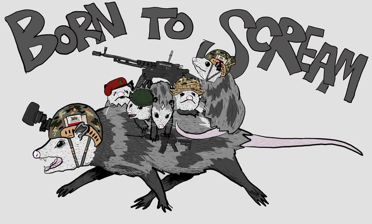 The most detailed of the possum momma technical designs, and also the most primal. Are we not all "born to scream?" Stickers printer TBD.